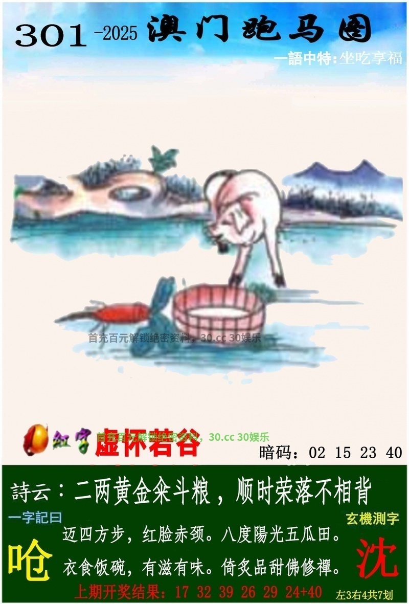 303期:🏆吃肉草菜🏆吃草吃菜】开:兔15准